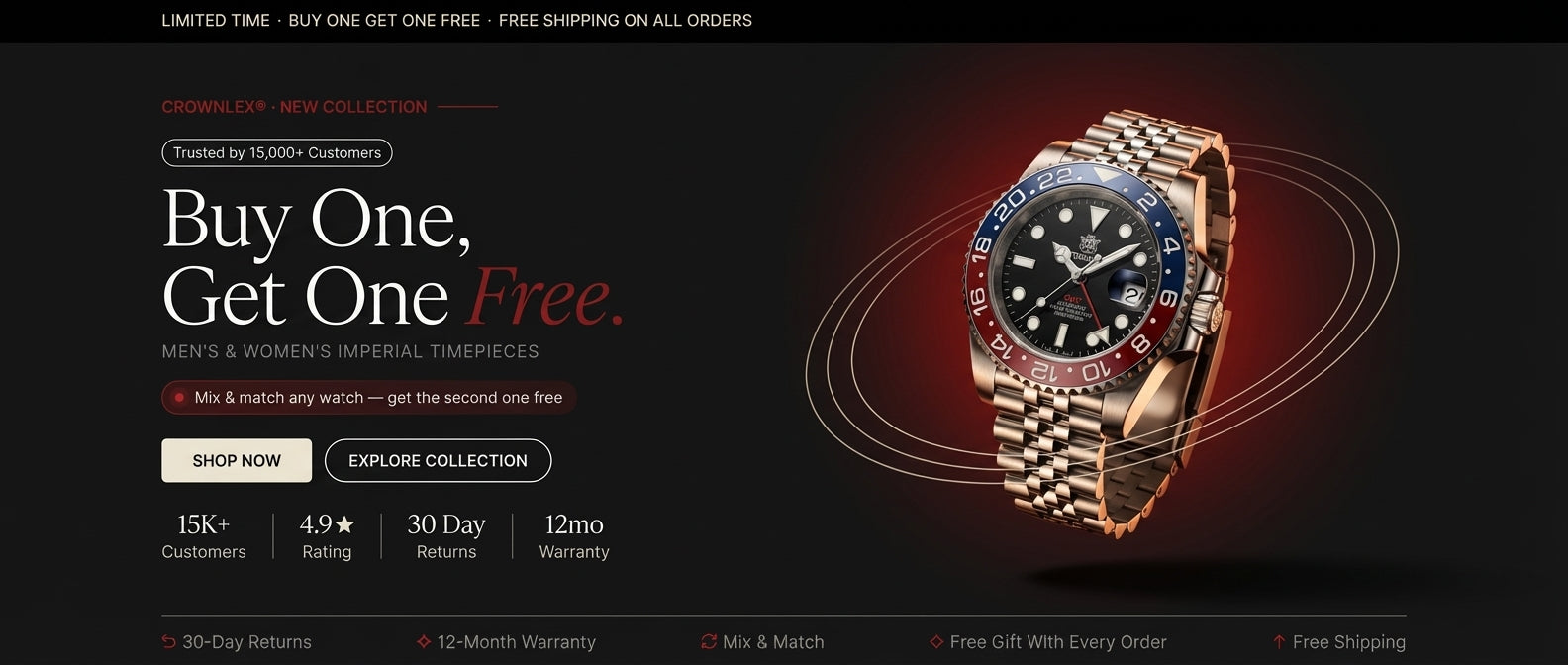 Every Crownlex timepiece is covered for a full year.